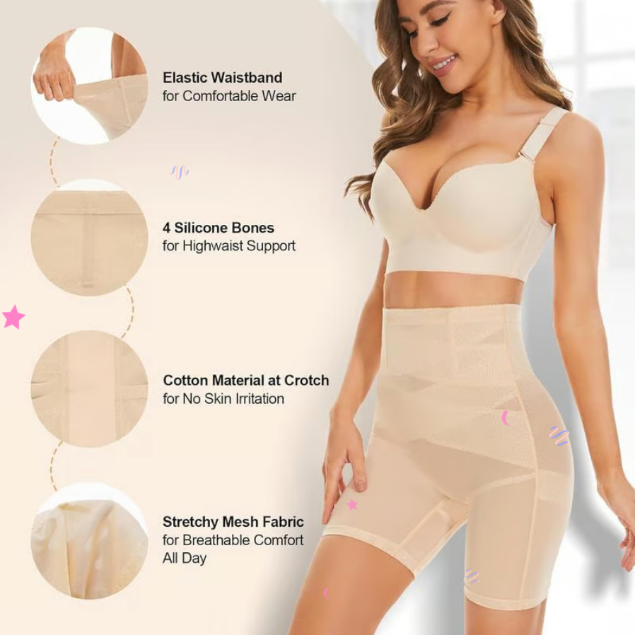✔ SILHOUETTE SMOOTH: SIMIYA shaping panties for women flat stomach compresses offer a slimming silhouette while helping to eliminate bulges. The targeted and comfortable X compression flattens and sculpts the torso area while the double layer of stretch fabric lifts the buttocks. High waisted and mid-thigh style makes it easy to style a cocktail dress for weddings or any special occasions.